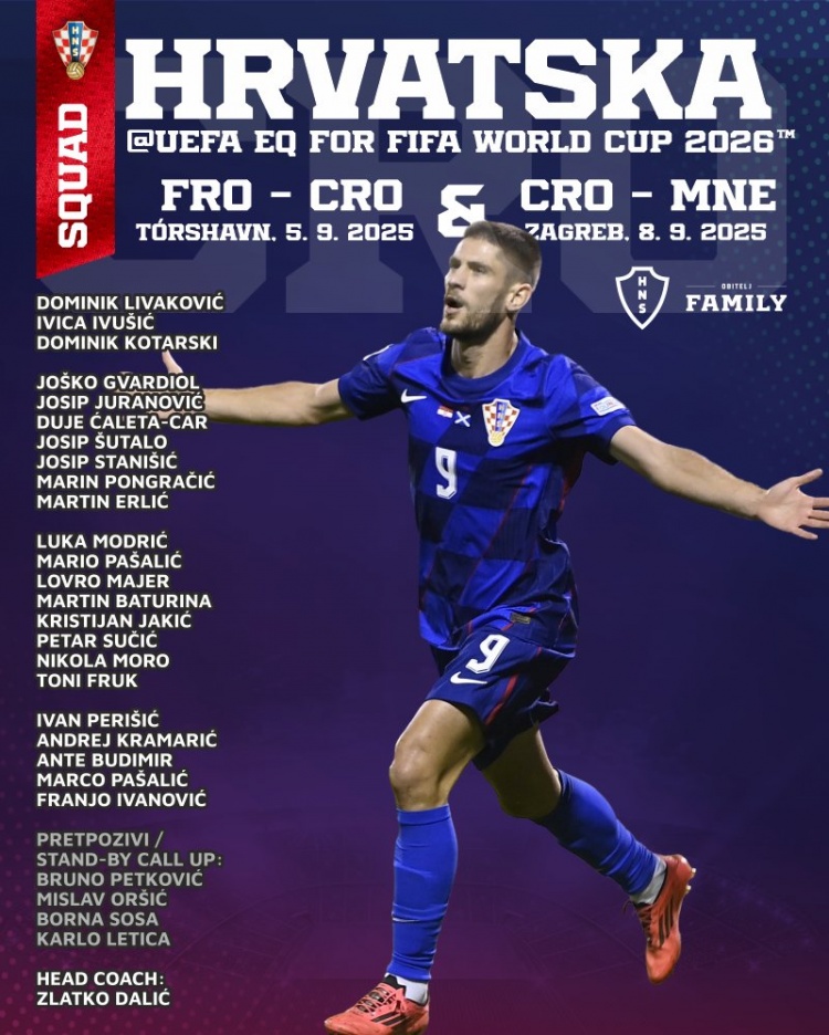 克罗地亚国家队9月世预赛球员名单