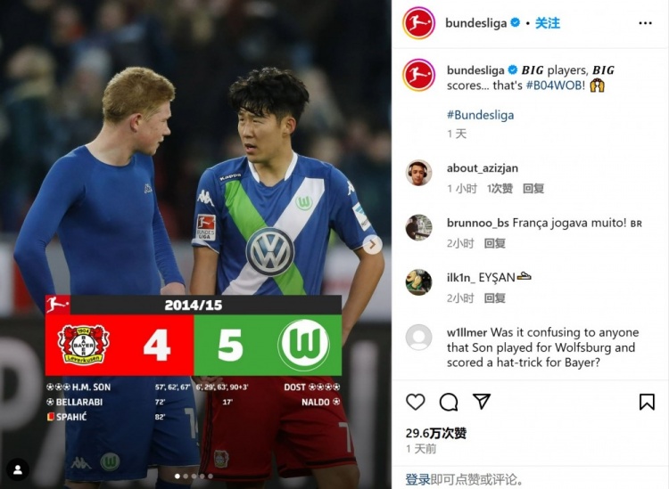 虽然汉堡很早就跟他完成了续约,可被挖角几乎是必然之事。2013年新赛季开打之前,勒沃库森掏出了1000万欧元买下了孙兴慜,这在当时没有“通货膨胀”的情况下可是不低的价格了。汉堡“忍痛割爱”卖出了韩国边锋,这也创造了他们彼时的纪录。
